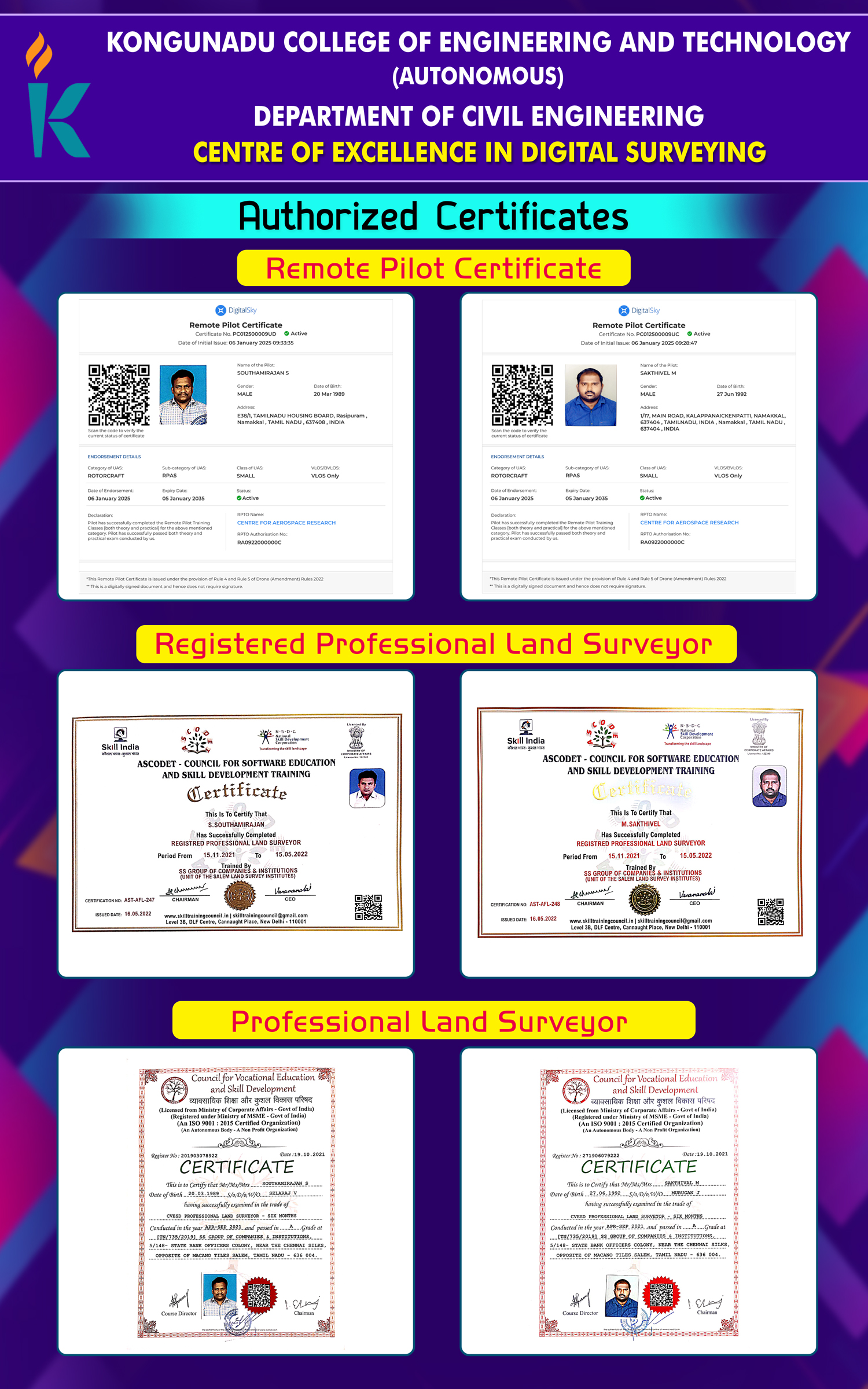| 2 | III | 2022-26 | 24.05.2025 to 30.05.2025 | VACCE10 | Digital Land Surveying and Mapping | Er.S.Rajkumar, CEO, SS Land Survey Institute, Salem |