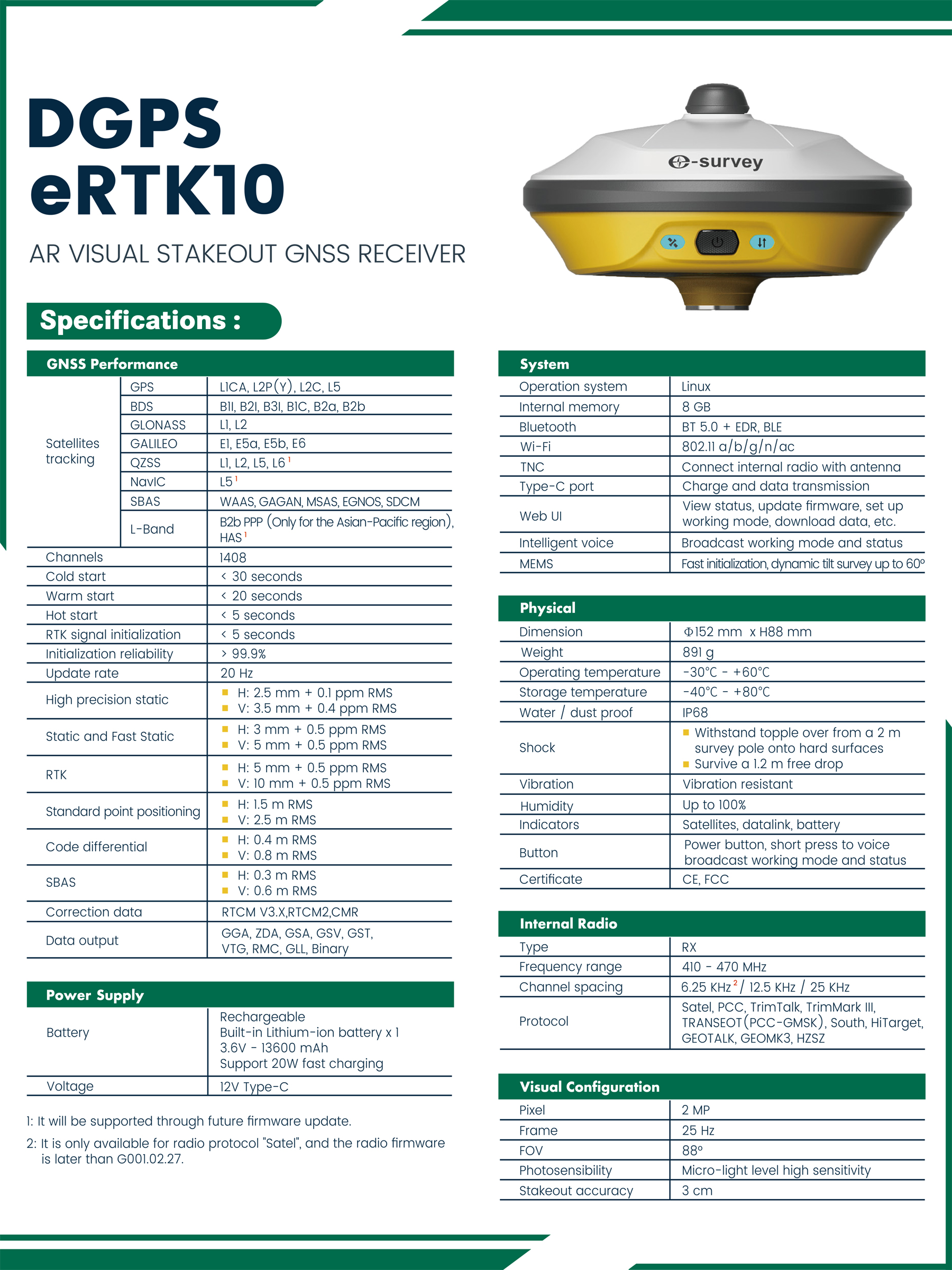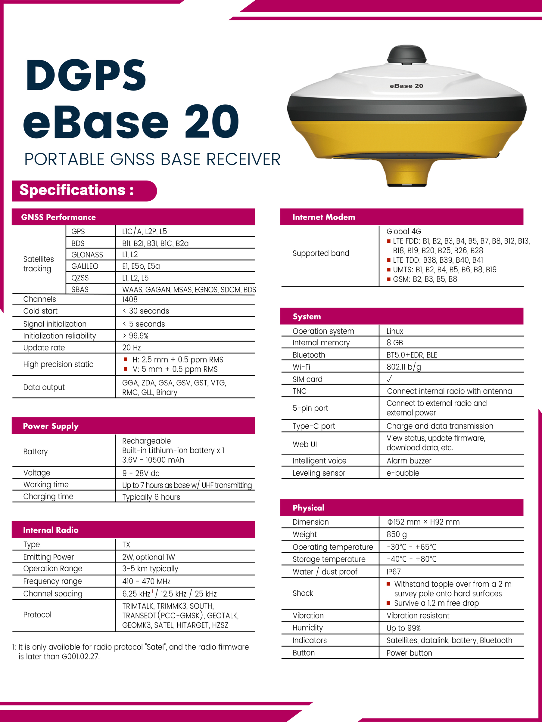 2. | Differential Global Positioning System (DGPS) (E survey at base 20 Receiver, E survey eRTWO GNSS Receiver) | 1 |